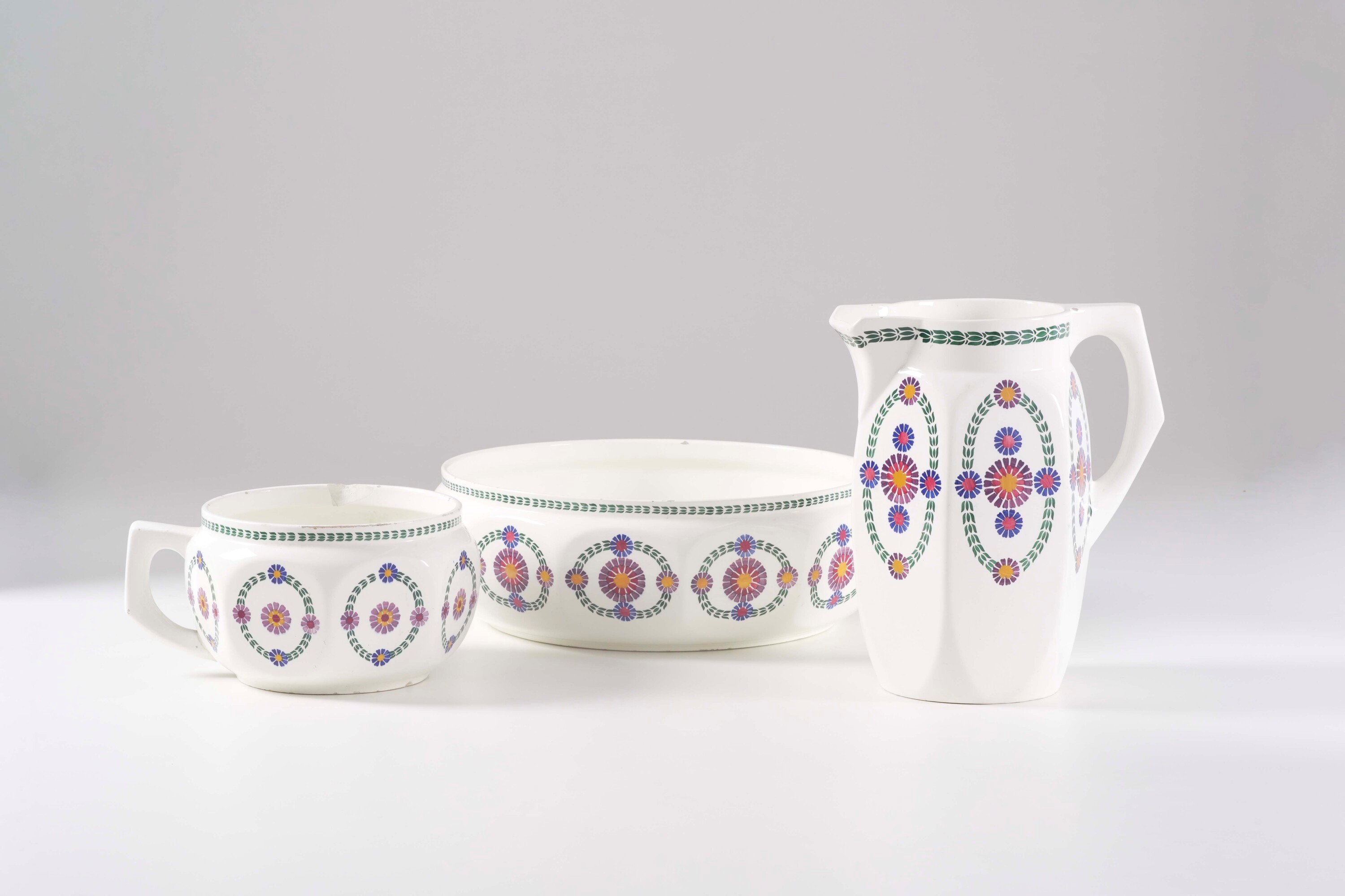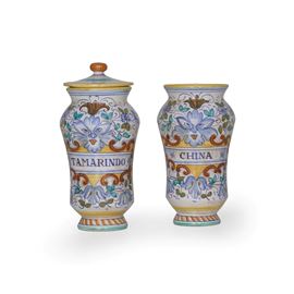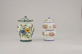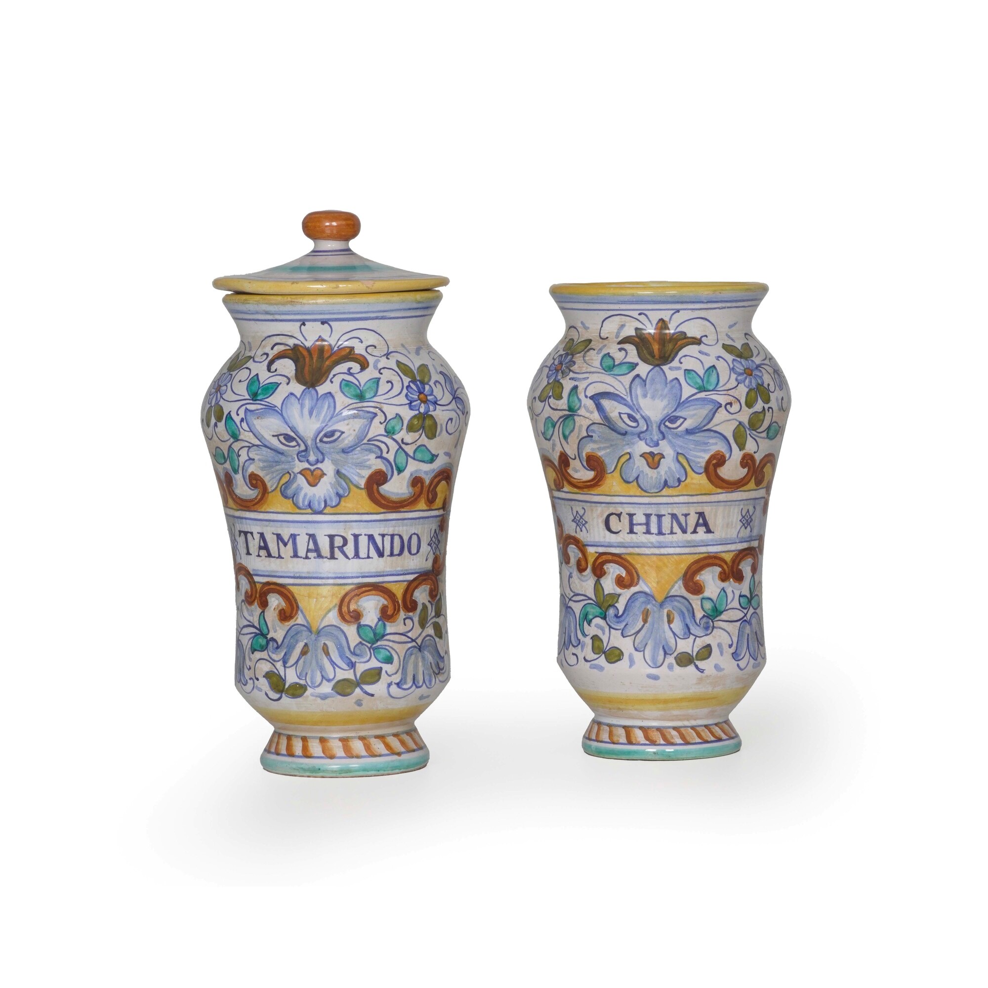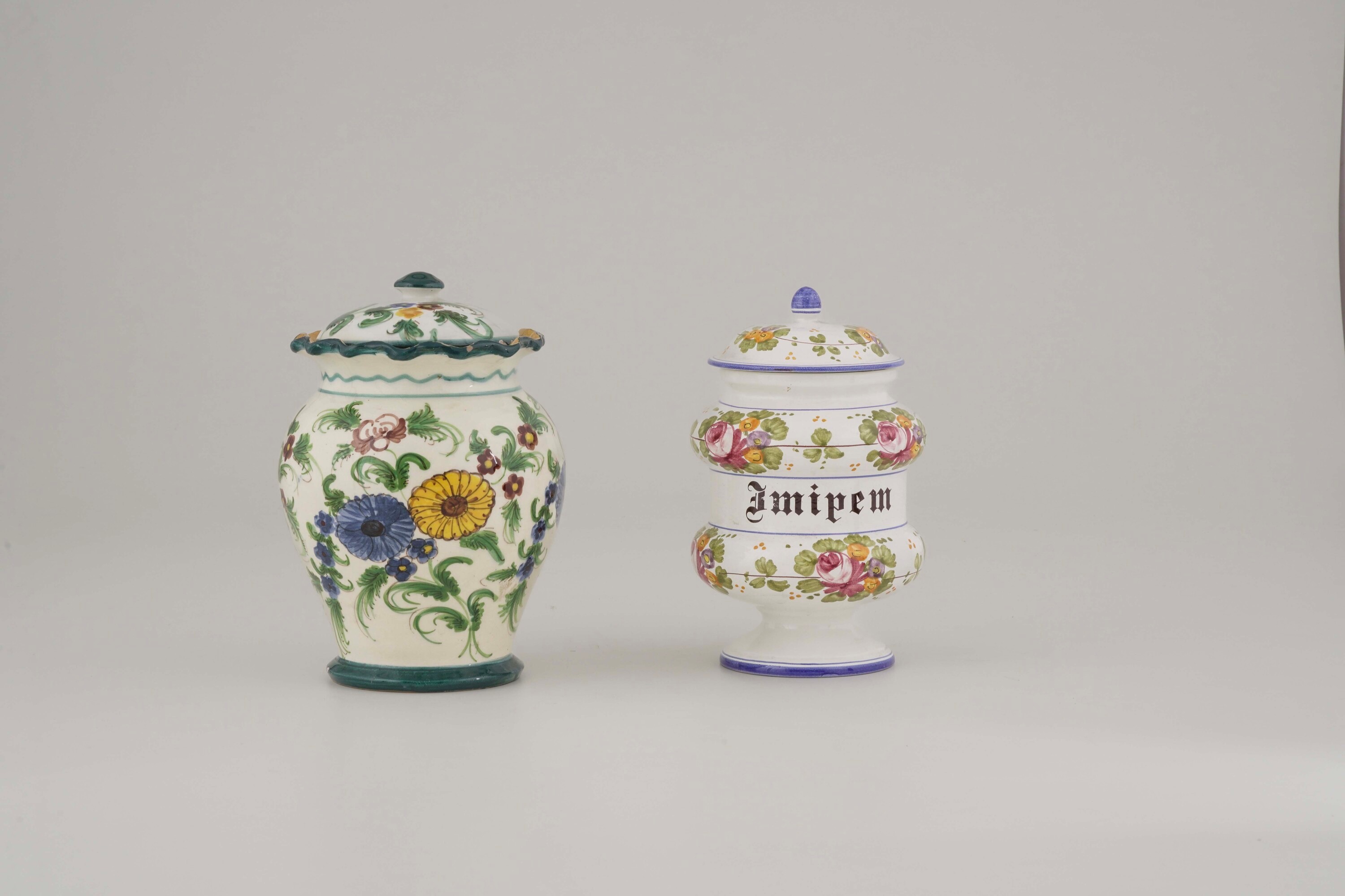 Maiolica e terraglia. Marca: assente. Altezza massima cm 28. Conservazione: ottima nel complesso; qualche sbeccatura