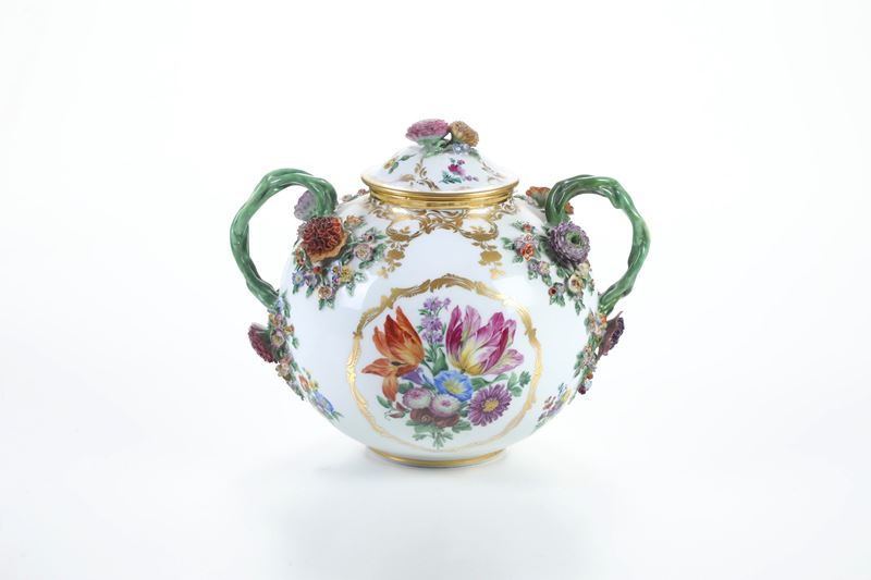 Recipiente biansato con coperchio. Germania, XX secolo.