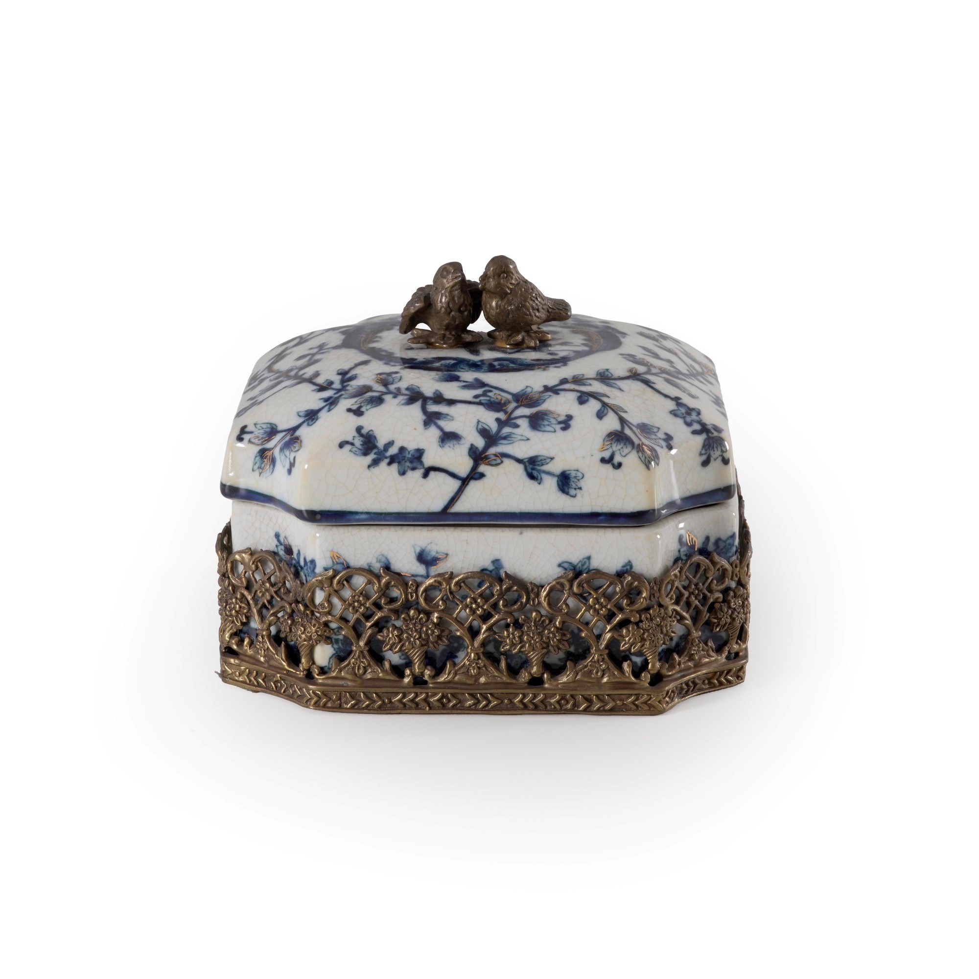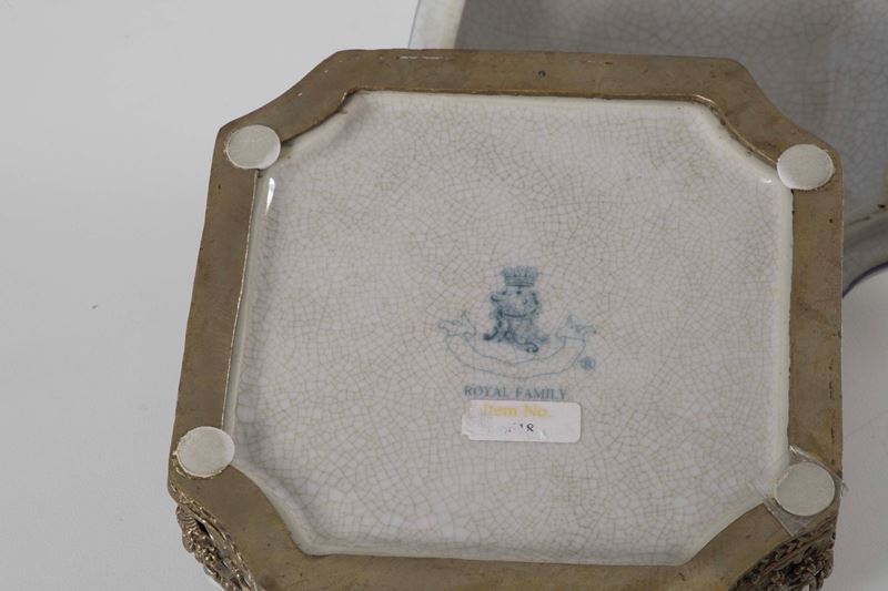 Porcellana e montatura in metallo. Marca: "R" con corona e "Royal Family". Dimensioni: altezza cm 12; cm 14x14. Conservazione: ottima