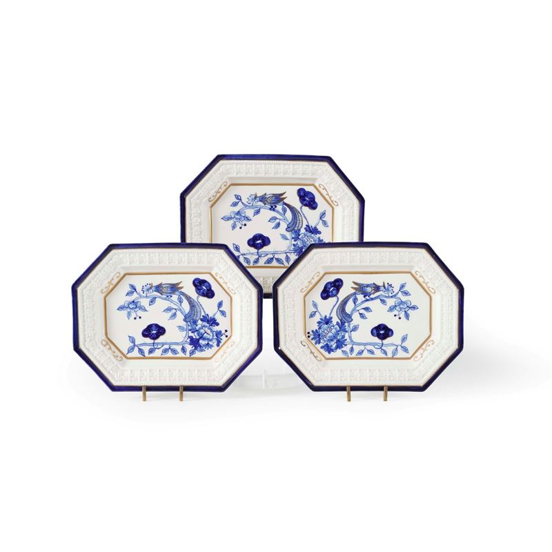Tre piatti. Bassano, Manifattura Agostinelli, XX secolo.