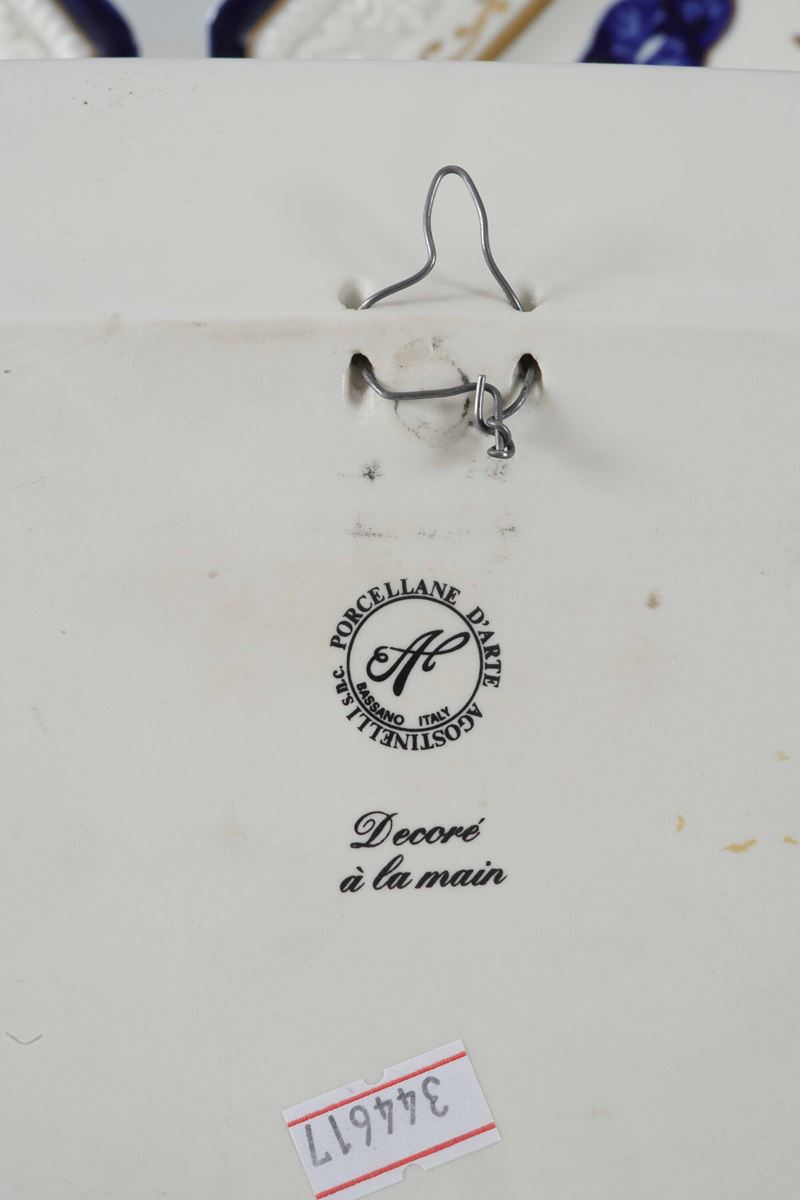 Porcellana. Marca: simbolo grafico con "Porcellane d'Arte Agostinelli". Dimensioni: cm 23x18. Conservazione: ottima.