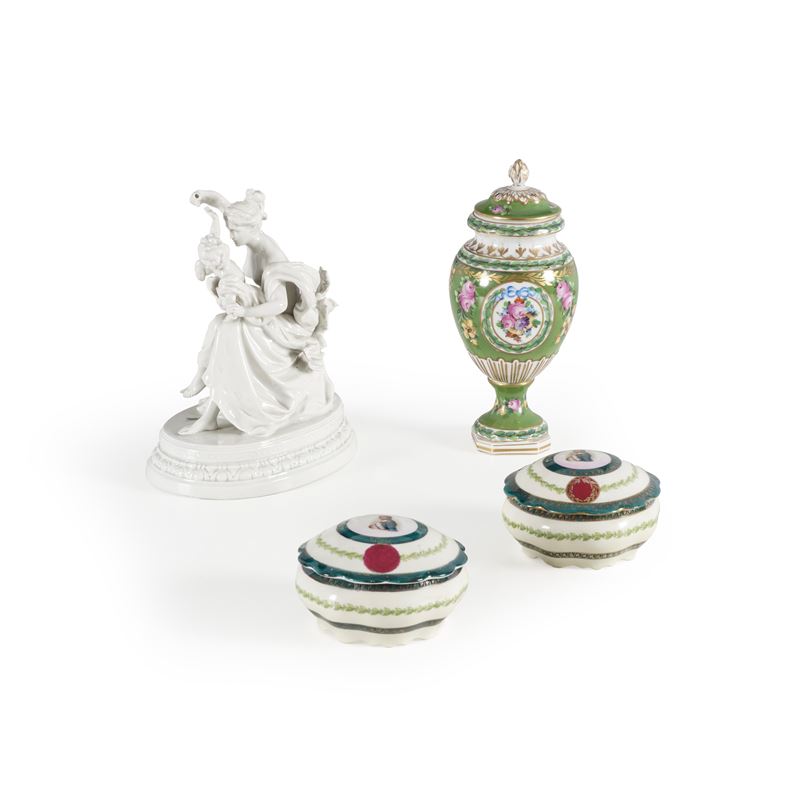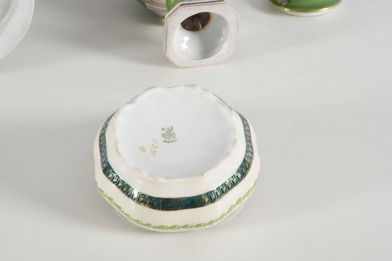 Porcellana. Marche diverse. Altezza massima cm 22,5. Conservazione: una scatolina con felatura; insignificanti mancanze.