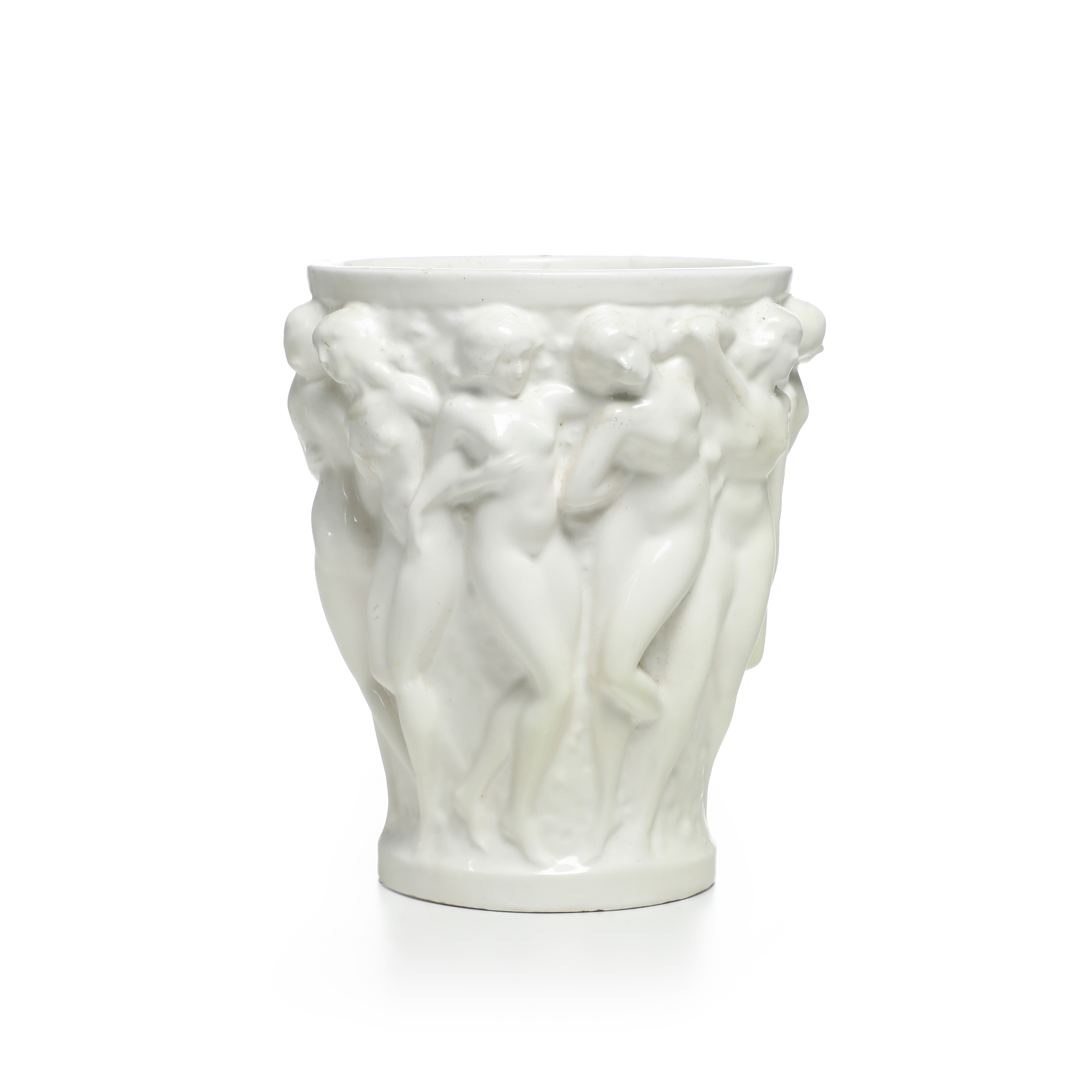 Il vaso riprende quello famoso in cristallo ideato da René Lalique nel 1927, che fece scalpore per la raffigurazione di sacerdotesse nude in stile neoclassico danzanti sulla sua superficie, simbolo di eleganza e sensualità