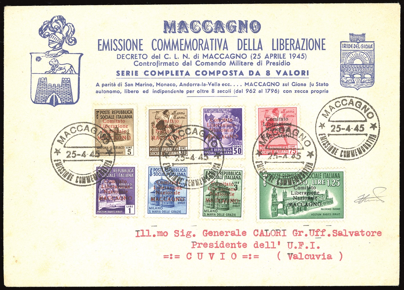 CLN MACCAGNO 1945 - Soprastampati, serie completa (1/8)