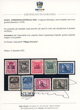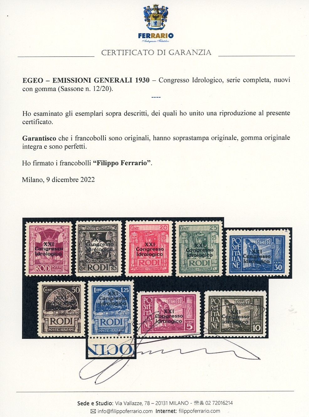 COLONIE ITALIANE - EGEO 1930 - Congresso Idrologico, serie completa (12/20)