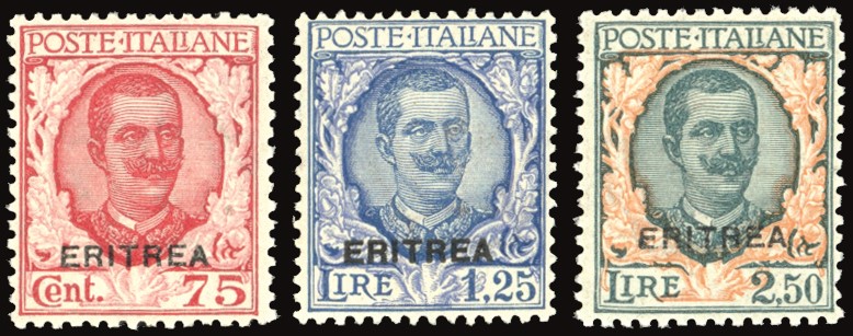 COLONIE ITALIANE - ERITREA 1926 - Soprastampati, serie completa (113/115)