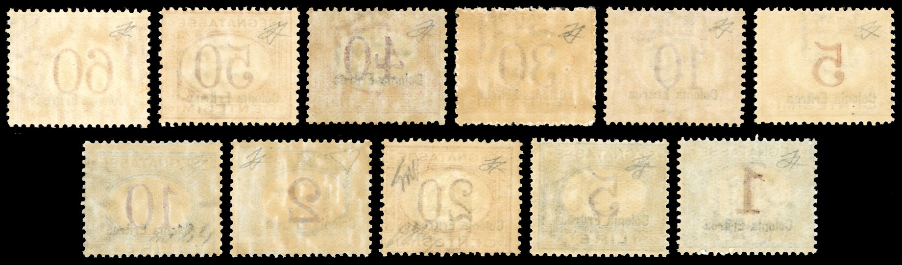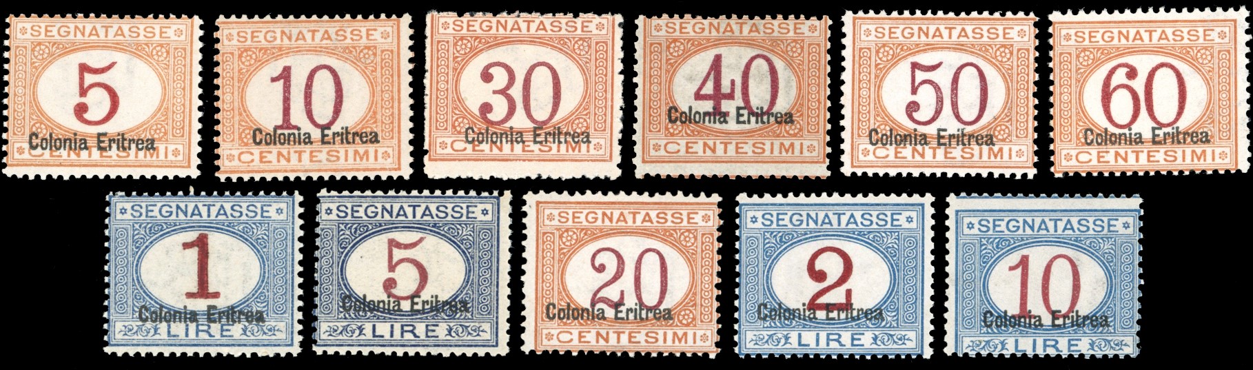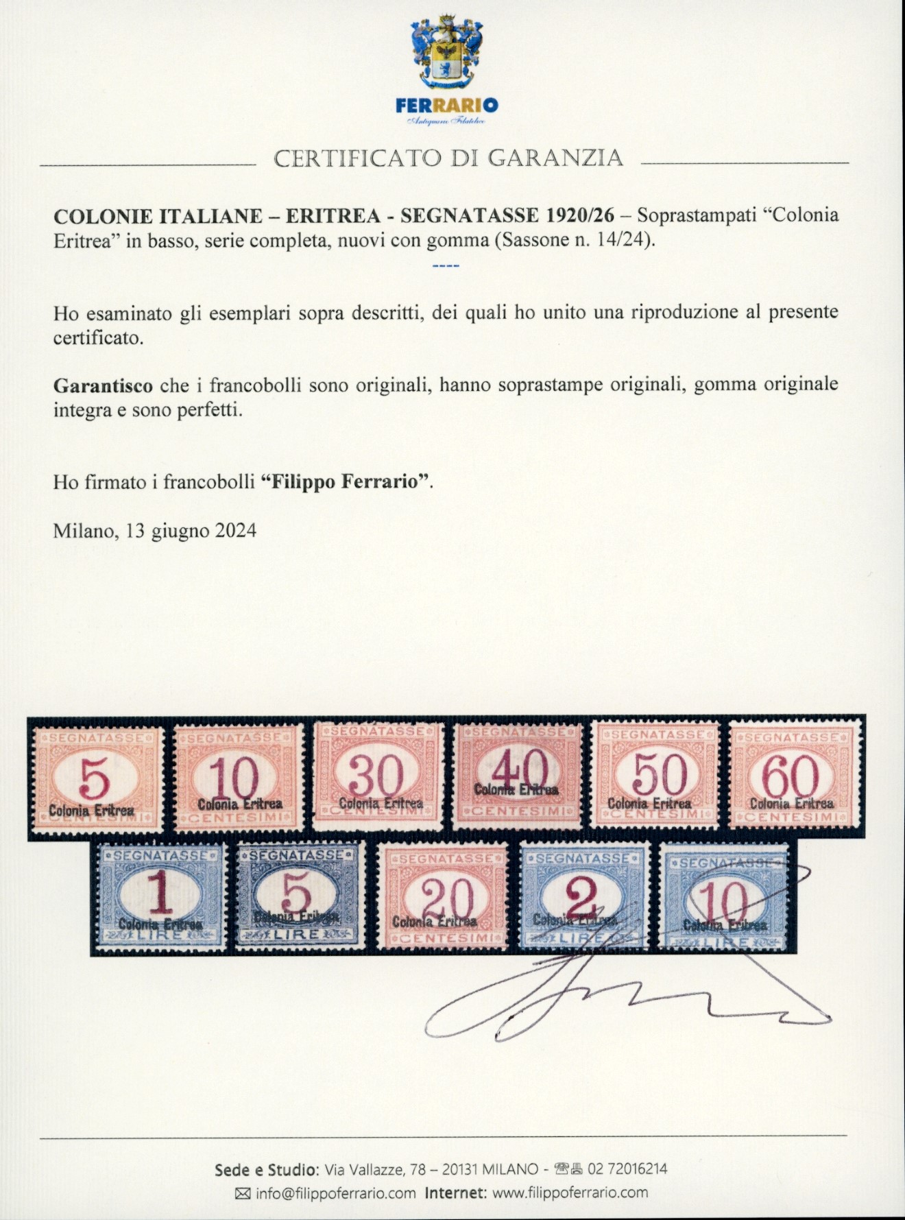 COLONIE ITALIANE - ERITREA SEGNATASSE 1920/26 - Soprastampati in basso, serie completa (14/24)