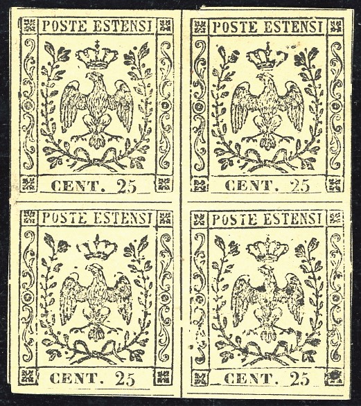 Blocco di quattro nuovo, gomma originale, integra per due esemplari, perfetto. Molto bello. Emilio Diena, Ferrario, G.Bolaffi. Cat. € 3.700+
