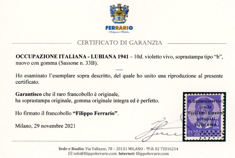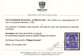 OCCUPAZIONI ITALIANE II GUERRA MONDIALE - LUBIANA 1941 - 10 d. soprastampa di tipo "b" (33B)
