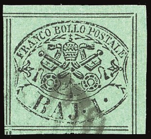 PONTIFICIO 1864 - 1 b. verde scuro, seconda composizione, otto filetti (2B)