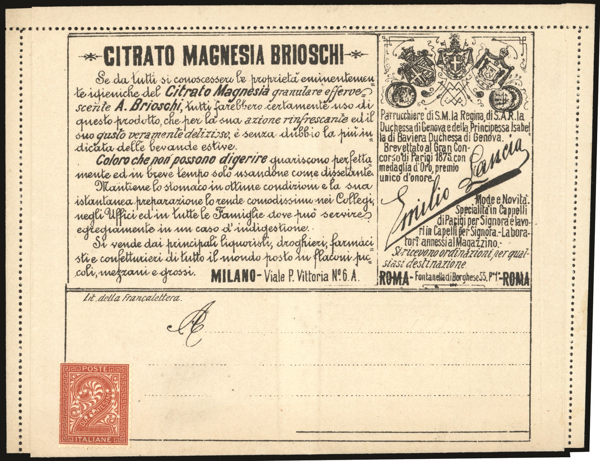 REGNO D'ITALIA - FRANCALETTERE 1887 - 1 cent. su 2 cent. (1)