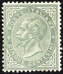 REGNO D'ITALIA 1866 - 5 cent. verde grigio scuro, De La Rue, tiratura di Torino (T16)