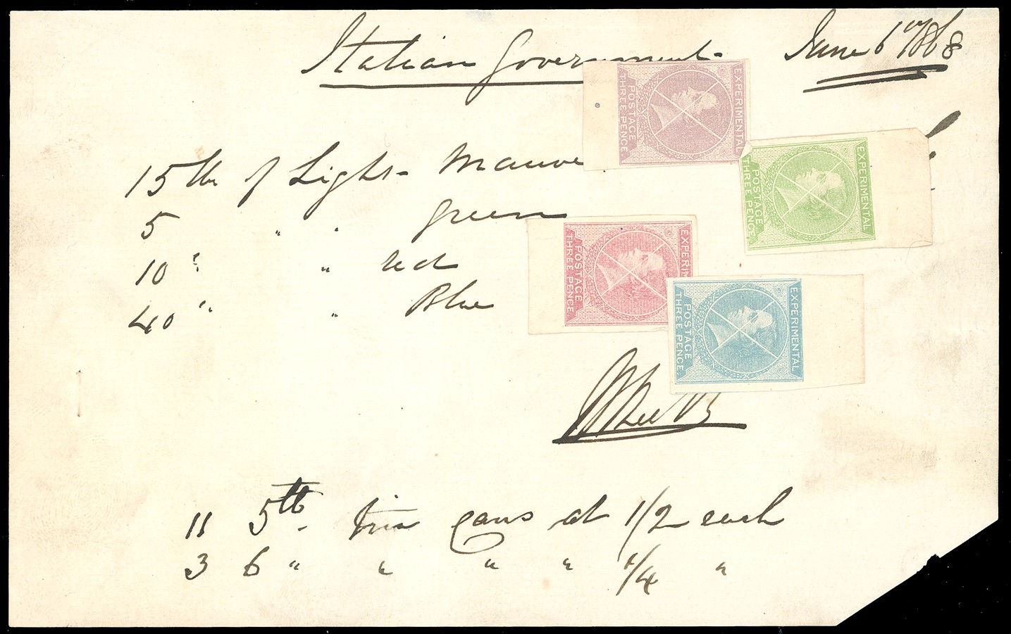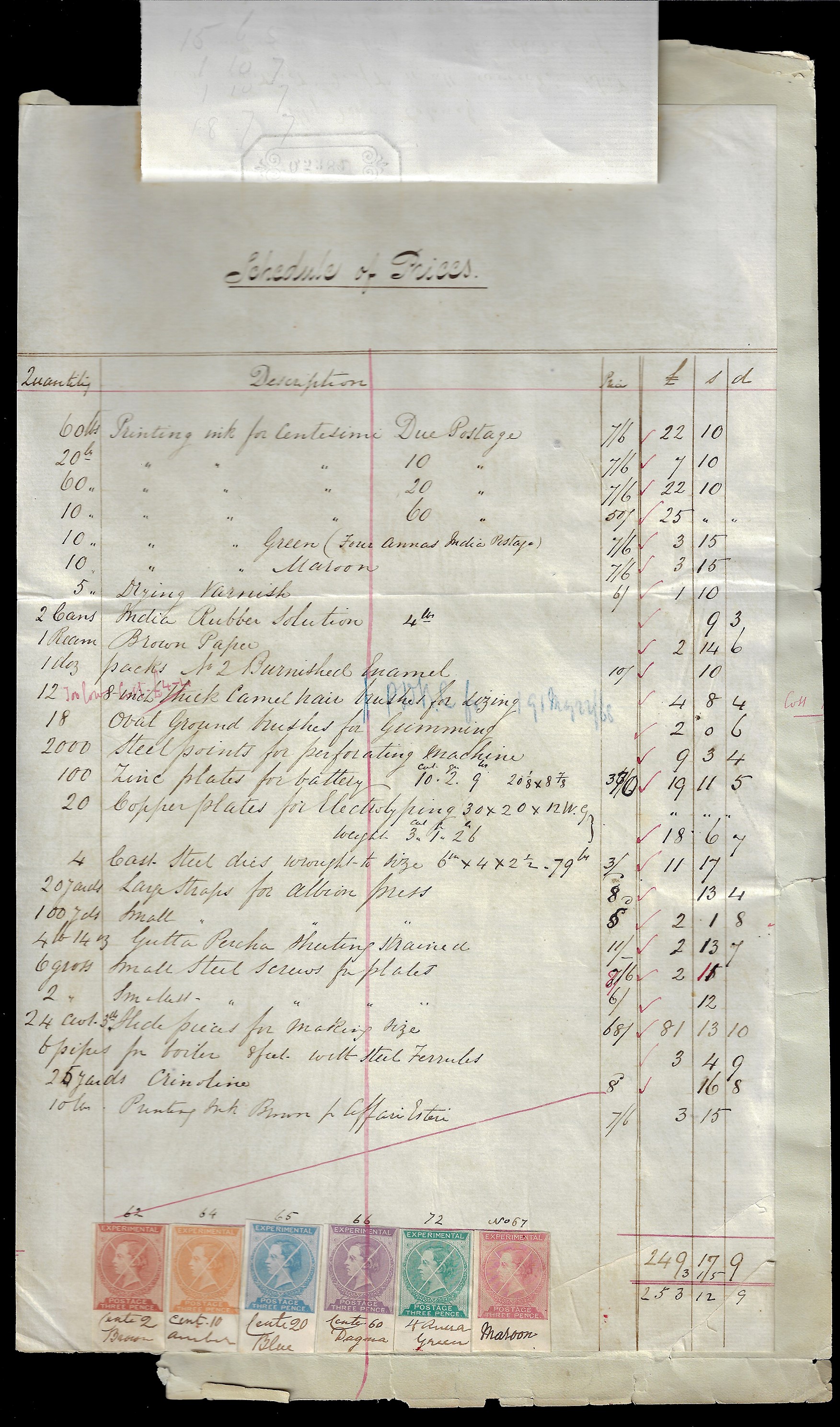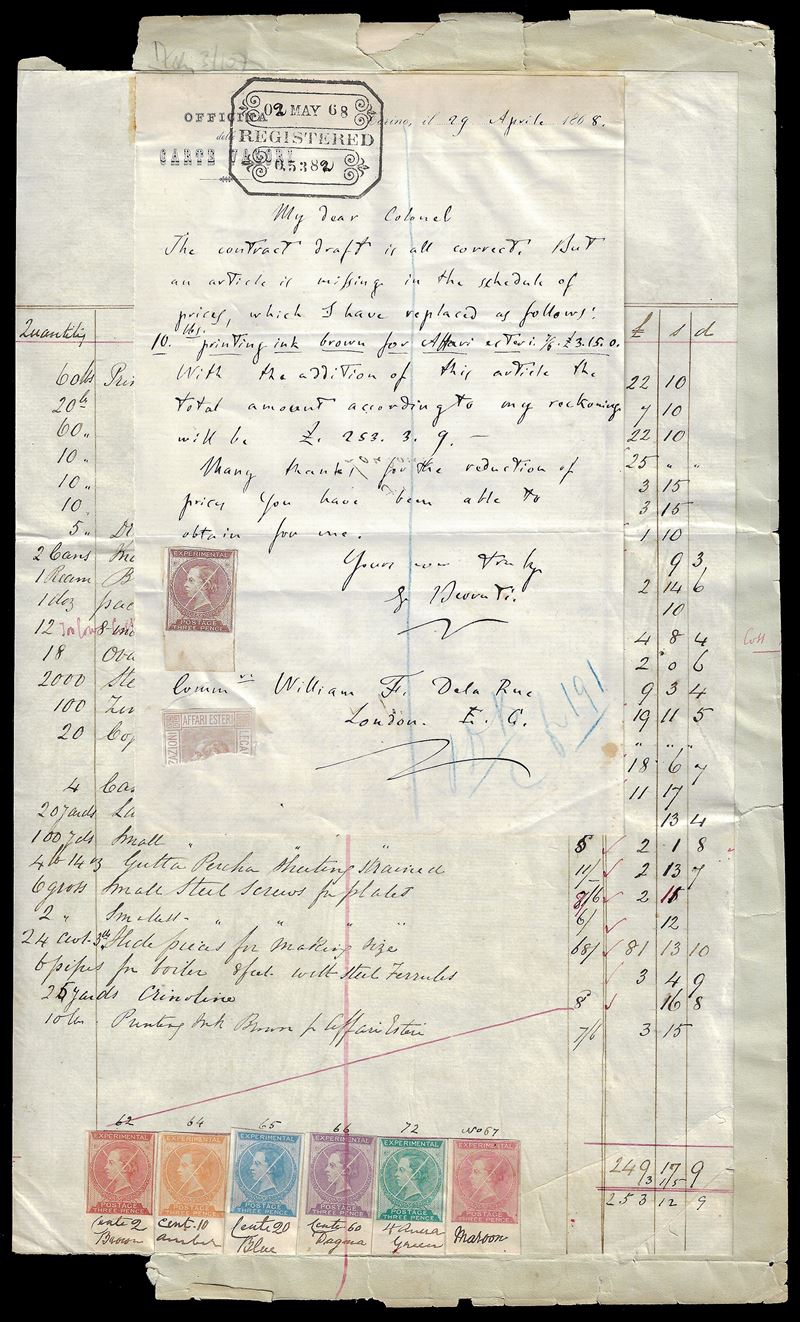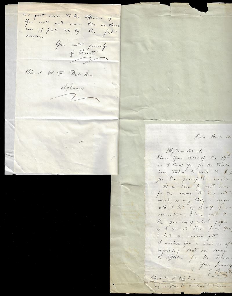 REGNO D'ITALIA 1867/68 - Eccezionale ed irripetibile insieme di documenti relativi alle richieste di forniture di inchiostri, da parte dell'Officina Carte Valori di Torino alla De La Rue di Londra.