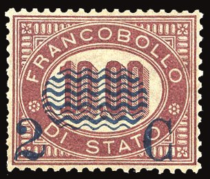 REGNO D'ITALIA 1878 - 2 cent. su 10 lire Servizio soprastampati (36)