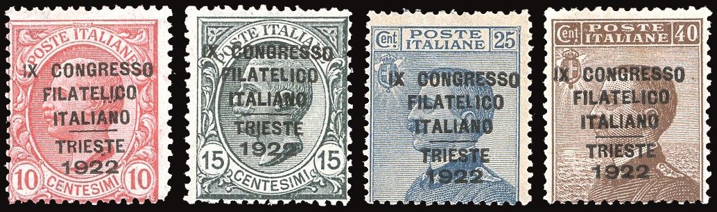 REGNO D'ITALIA 1922 - Congresso Filatelico, soprastampati, serie completa (123/126)