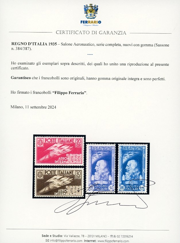 REGNO D'ITALIA 1935 - Salone Aeronautico, serie completa (384/387)