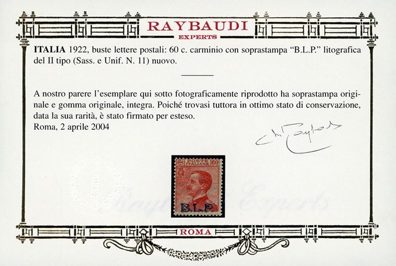 Gomma originale integra, perfetto e molto fresco. Cert. Oro Raybaudi. Cat. € 7.500