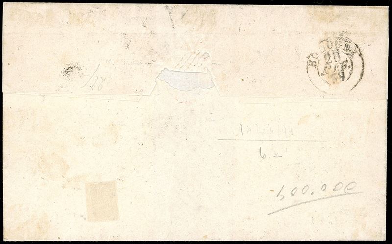 Su fresca lettera di Firenze 27/12/1859 a Bologna. Affrancatura estremamente rara per il Governo Provvisorio delle Romagne, di ottimo aspetto. Emilio, Alberto ed Enzo Diena, Chiavarello. Ex coll. Imperato. Cat. € 30.000