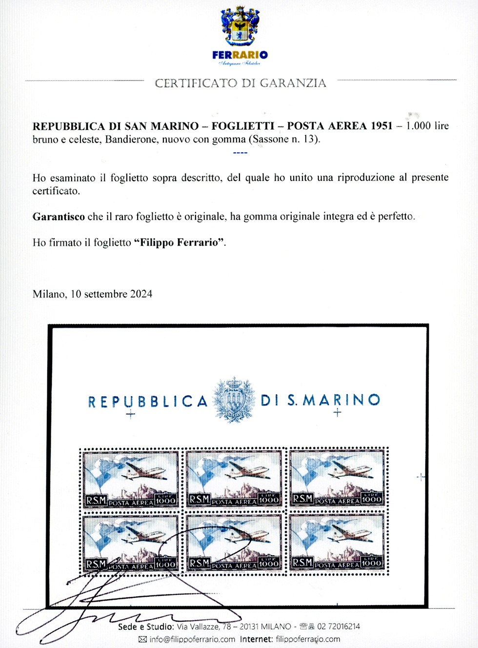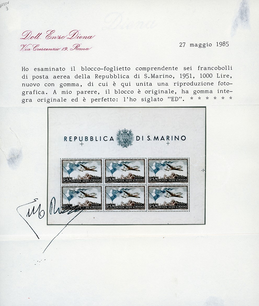 SAN MARINO - FOGLIETTI 1951 - 1.000 lire Bandierone, foglietto (13)