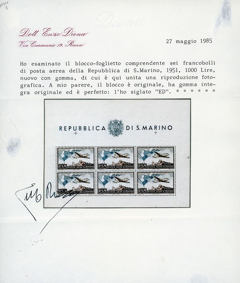 Gomma originale integra, perfetto. Cert. E.Diena. Cat. € 15.000