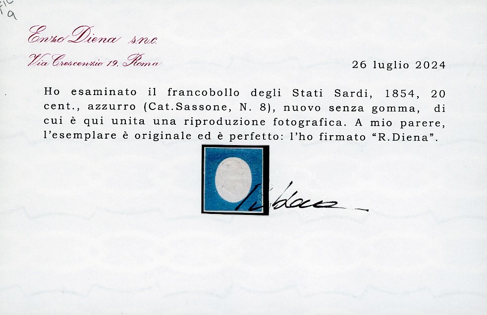 SARDEGNA 1854 - 20 cent. azzurro (8)