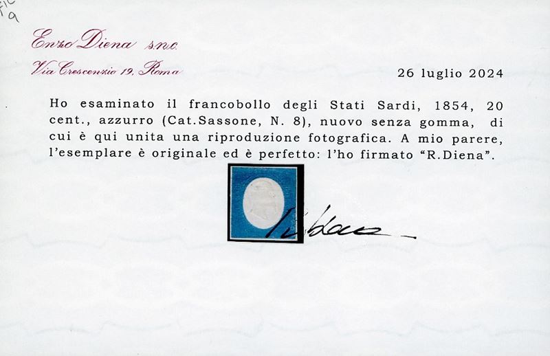 Nuovo senza gomma, perfetto e molto fresco. Raro. Emilio e Alberto Diena, cert. R.Diena. Cat. € 16.000