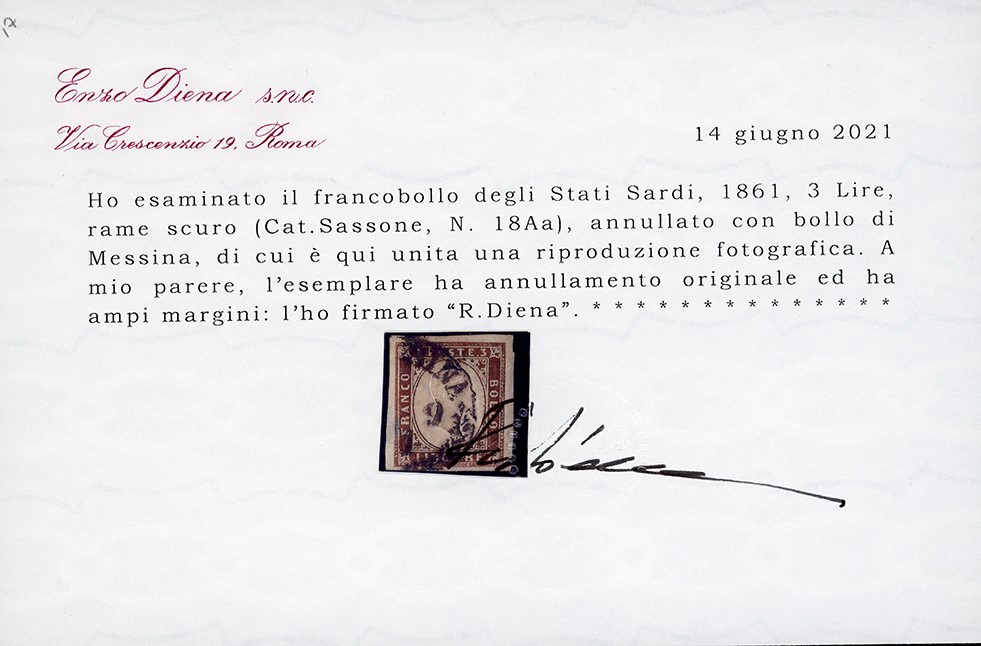 Perfetto e ben marginato, usato con il bollo borbonico. Splendido e molto raro! Em. ed E.Diena, Fiecchi, cert. Diena. Cat. € 8.000++