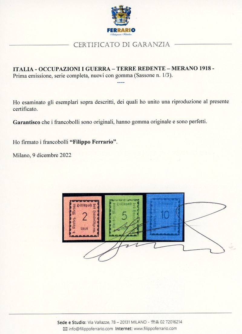 TERRE REDENTE - MERANO 1818 - I emissione, serie completa (1/3)