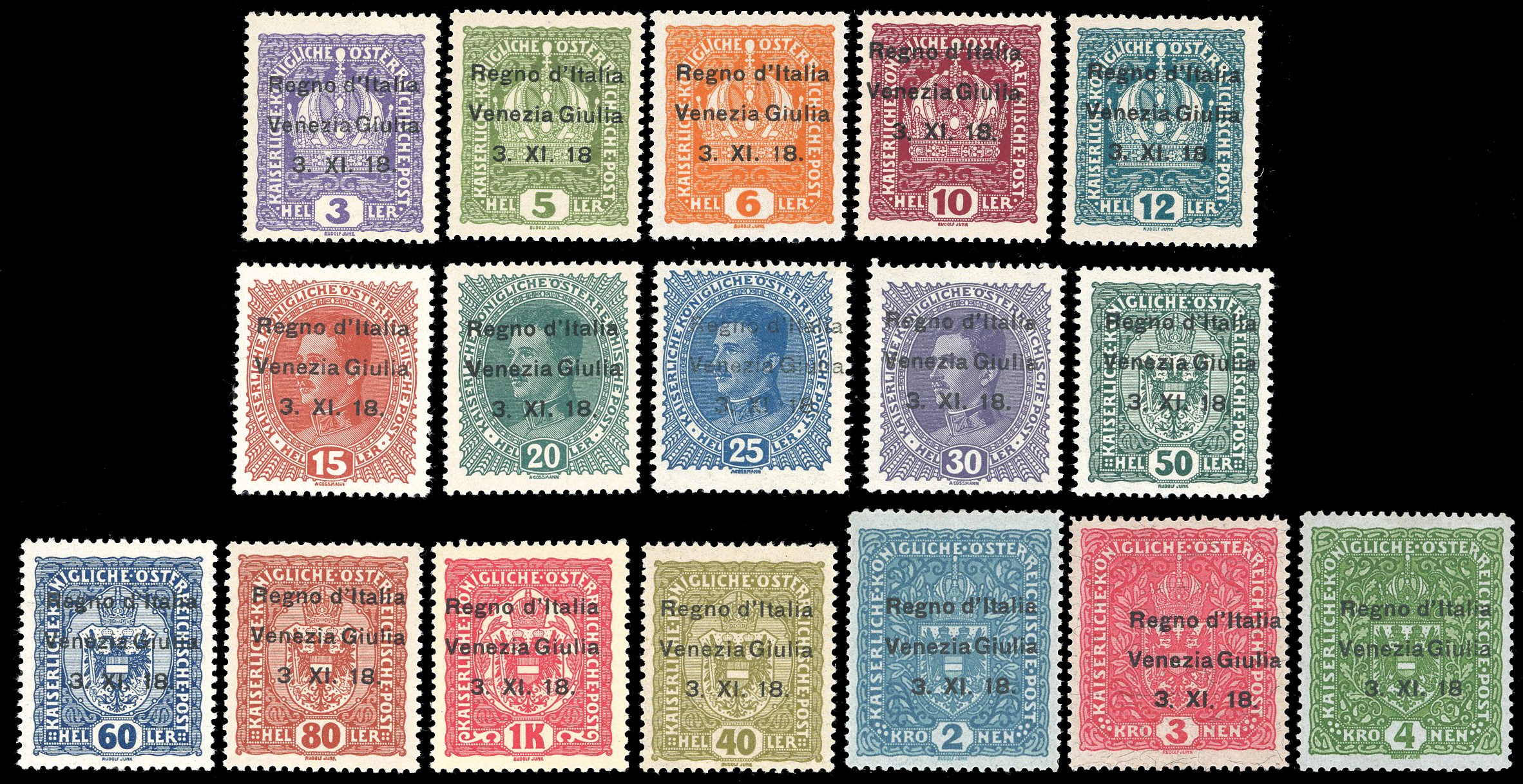 TERRE REDENTE - VENEZIA GIULIA 1918 - Soprastampati, serie completa (1/17)