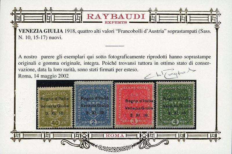 Nuovi, gomma originale integra, perfetti e molto freschi. Ottima qualità. Alti valori firmati A.Diena e cert. Ferrario. Cat. € 8.500