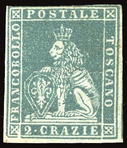 TOSCANA 1851 - 2 crazie azzurro chiaro su grigio, I emissione (5),
