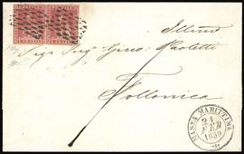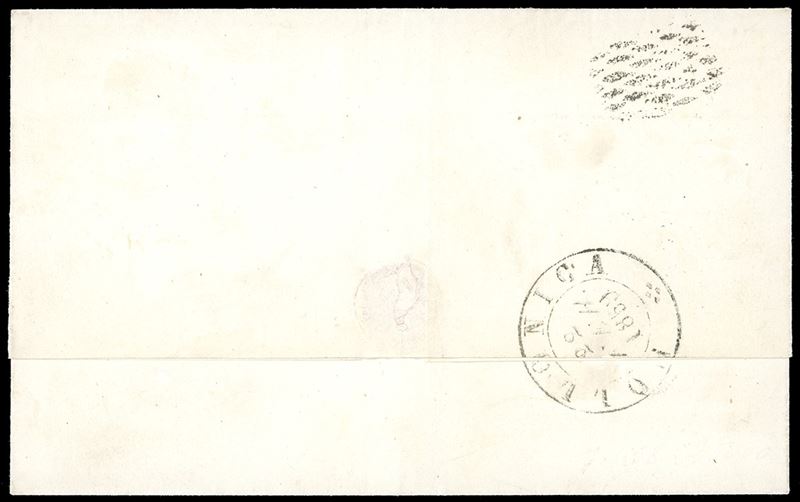 Perfetta e ben marginata, su fresca lettera da Massa Marittima 24/2/1859 a Follonica. Splendida. G.Oliva, cert. Ferrario. Cat. € 9.000