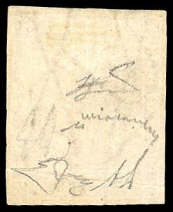 Usato, perfetto e ben marginato. Molto raro, probabilmente unico in queste splendide condizioni qualitative. Emilio, Alberto ed Enzo Diena, Chiavarello (per esteso), cert. Ferrario. Cat. € 12.000+