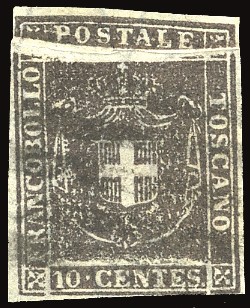 TOSCANA PLI D'ACCORDEON - COLLEZIONE DUCCIO 1860 - 10 cent. bruno nero (19a), pli d'accordeon orizzontale