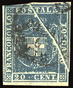 TOSCANA PLI D'ACCORDEON - COLLEZIONE DUCCIO 1860 - 20 cent. azzurro (20), doppio pli d'accordeon diagonale di cui uno molto [..]