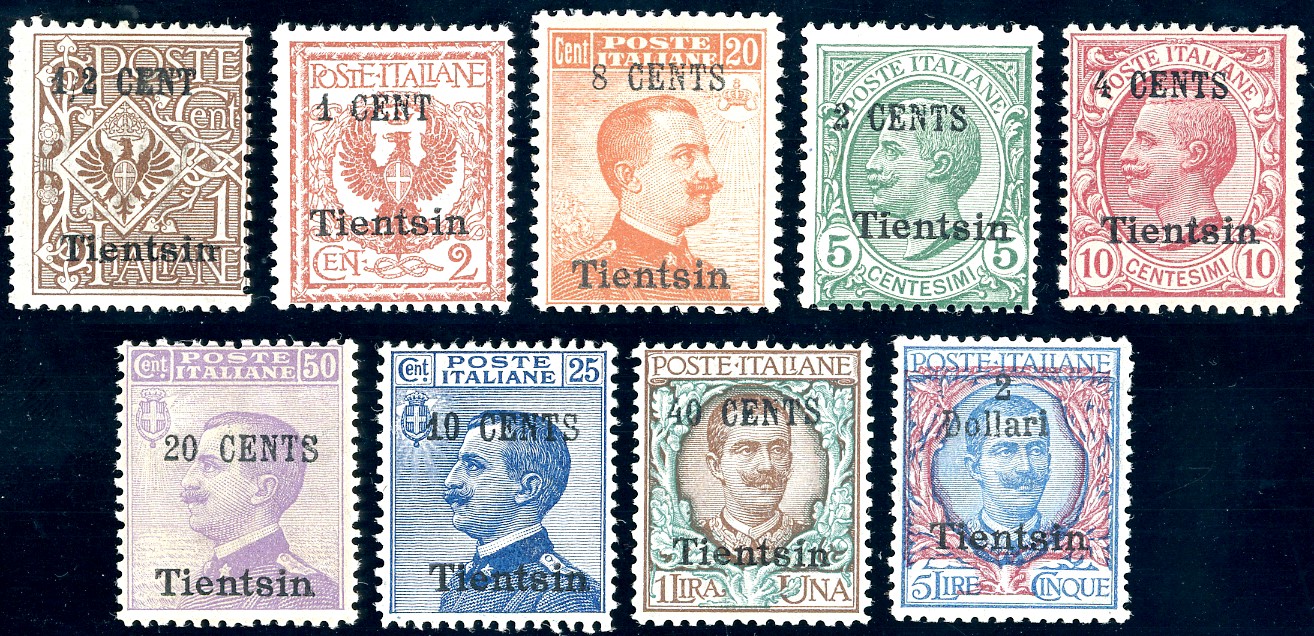 UFFICI POSTALI ALL'ESTERO - CINA TIENTSIN 1918/19 - Soprastampati localmante con nuovo valore, serie completa (15/23)