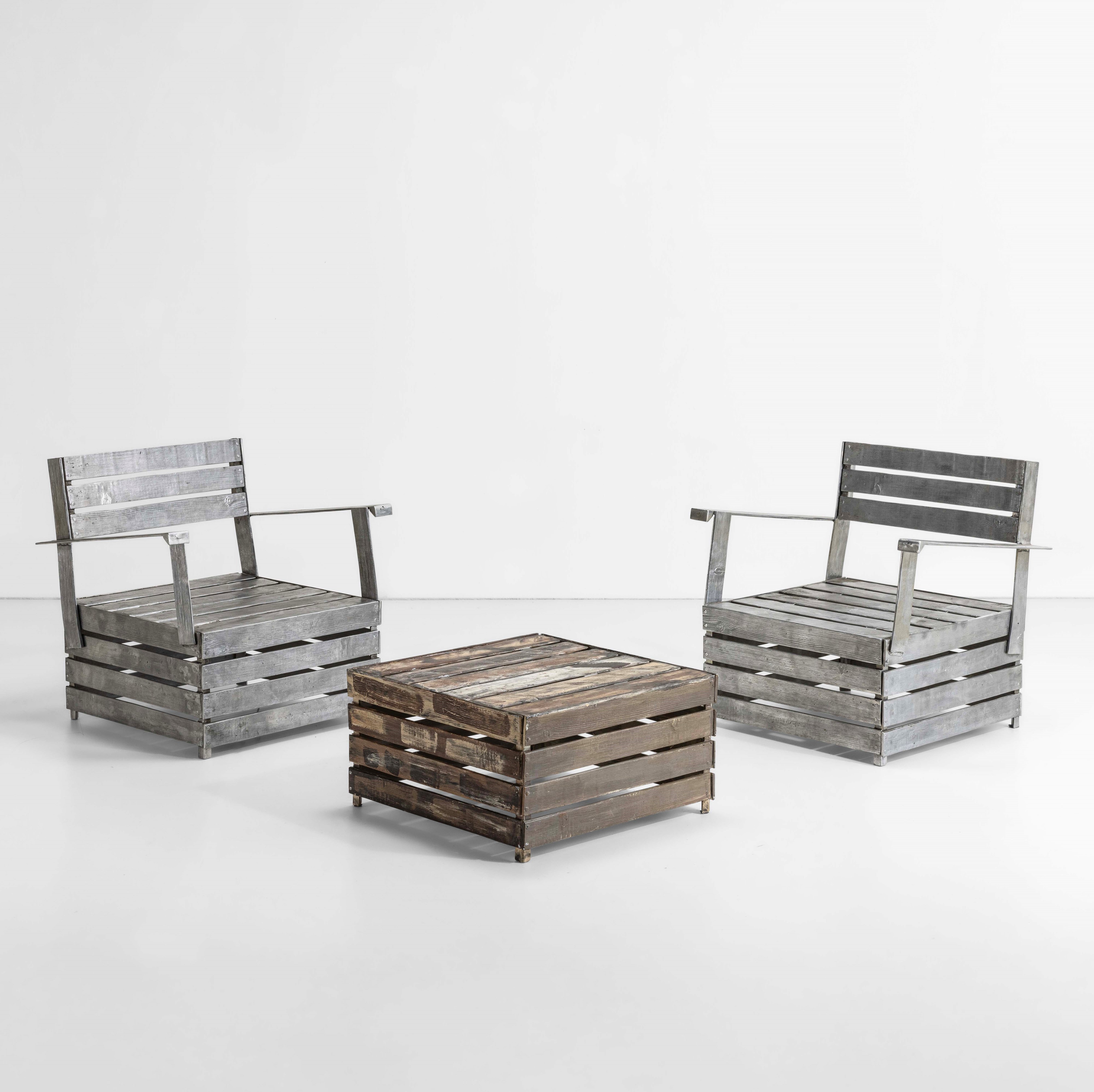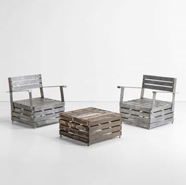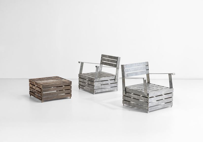 Due poltrone con tavolo basso della serie Ortofrutta