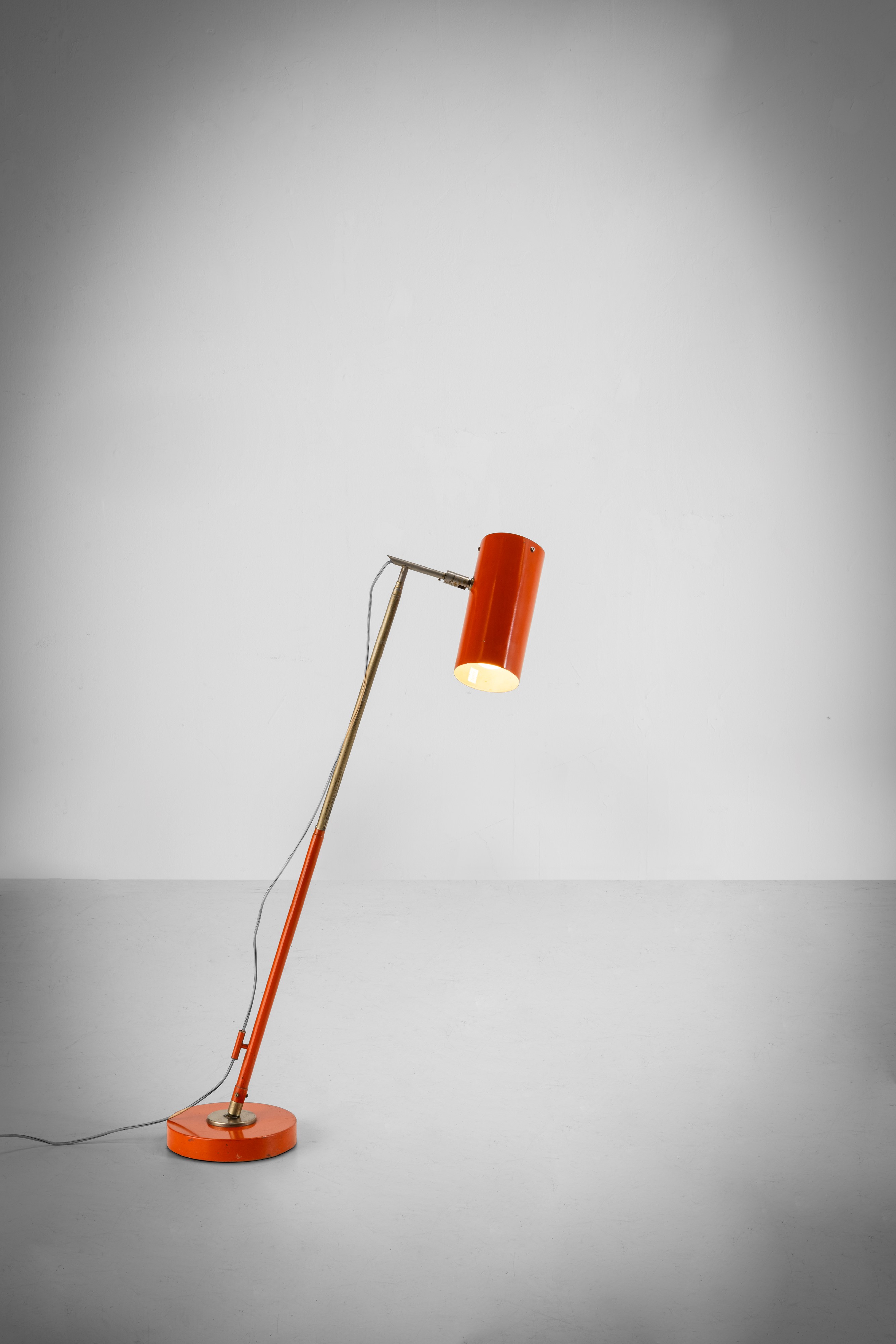 Struttura estensibile in metallo laccato e ottone, diffusore orientabile in metallo laccato, base in metallo e ghisa.