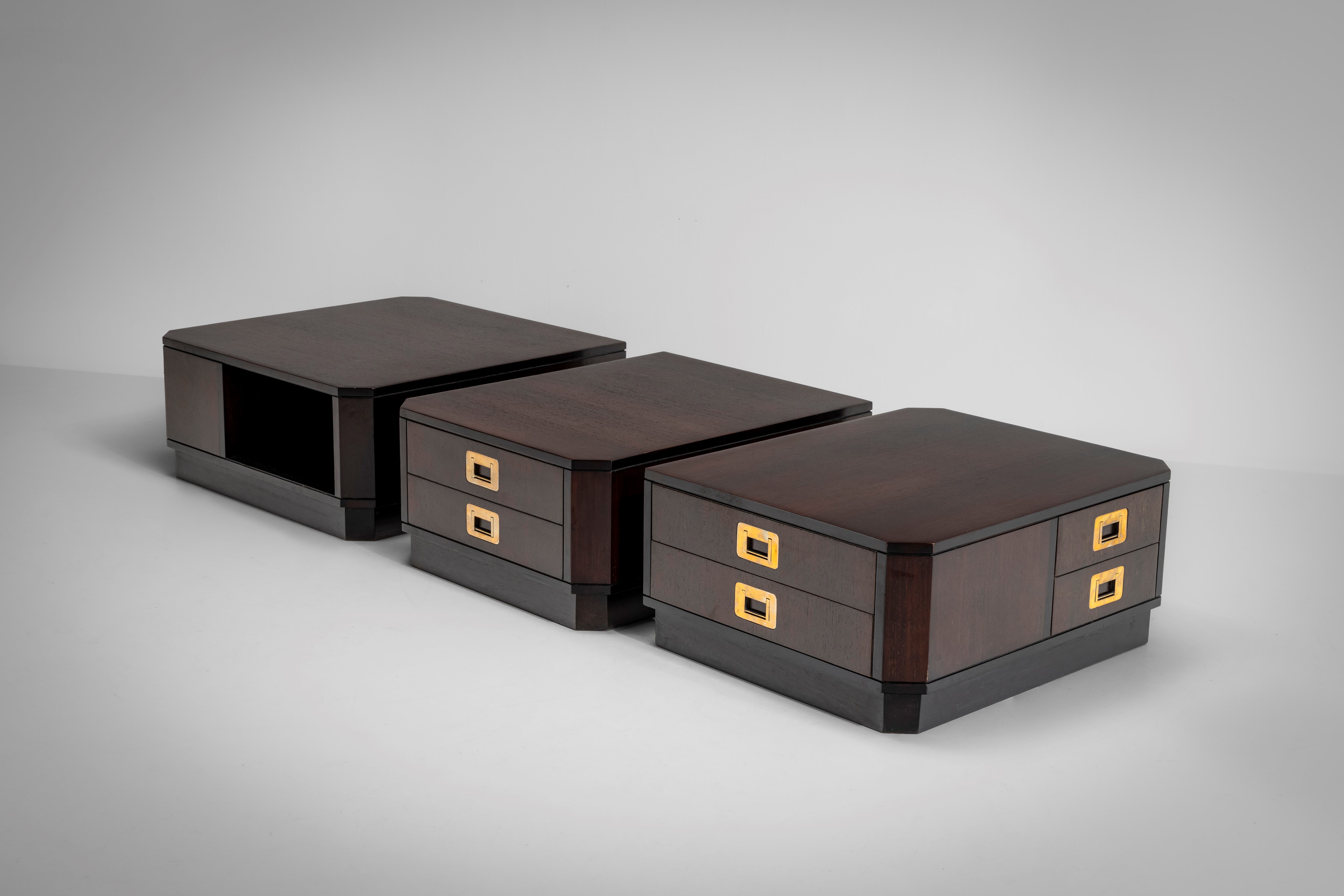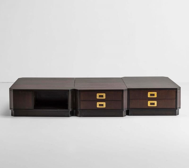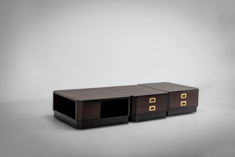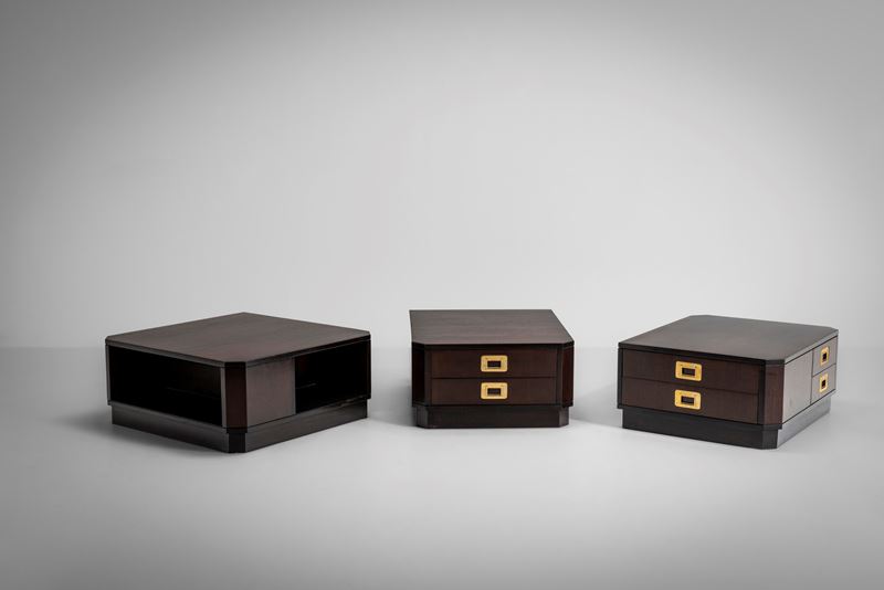 Struttura in legno e legno impiallacciato. Dettagli in ottone.