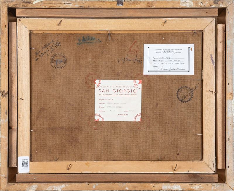 Label on the reverse from Galleria d’Arte San Giorgio, Venice