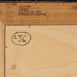 Work registered with the Emilio Vedova Archive, Venice, under no. 1335 on February 25, 2005, and accompanied by a certificate of authenticity signed by the artist