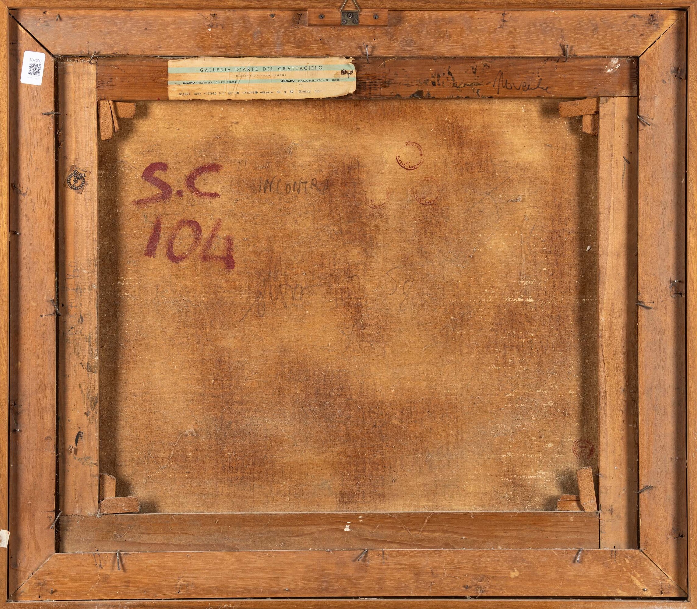 labels and stamps on the reverse from Galleria d'Arte del Grattacielo, Milan