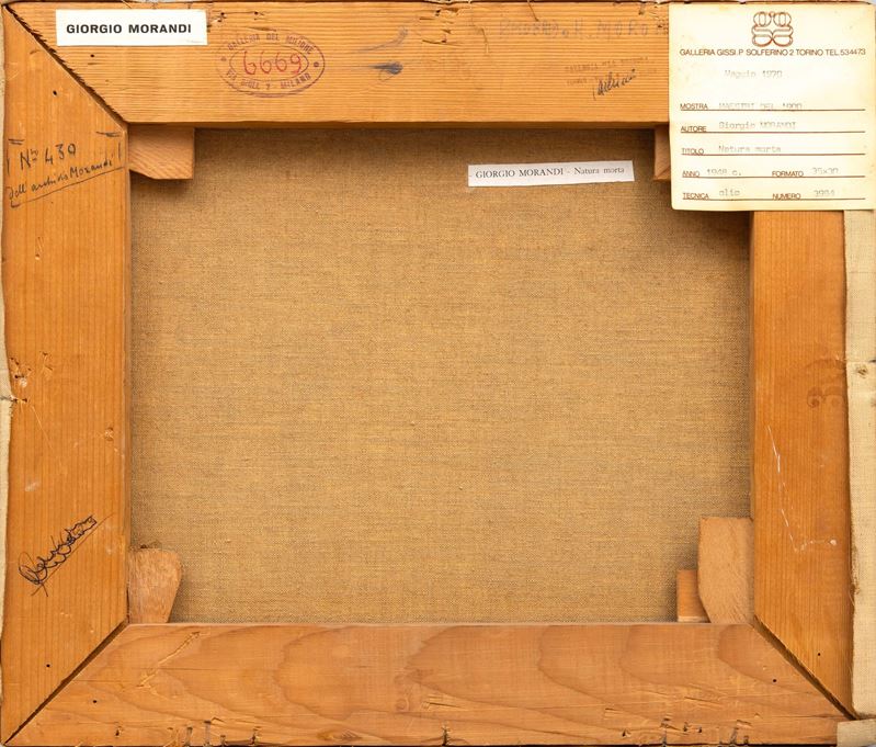 Inscription in pen on the stretcher: no. 430 of the Morandi Archive