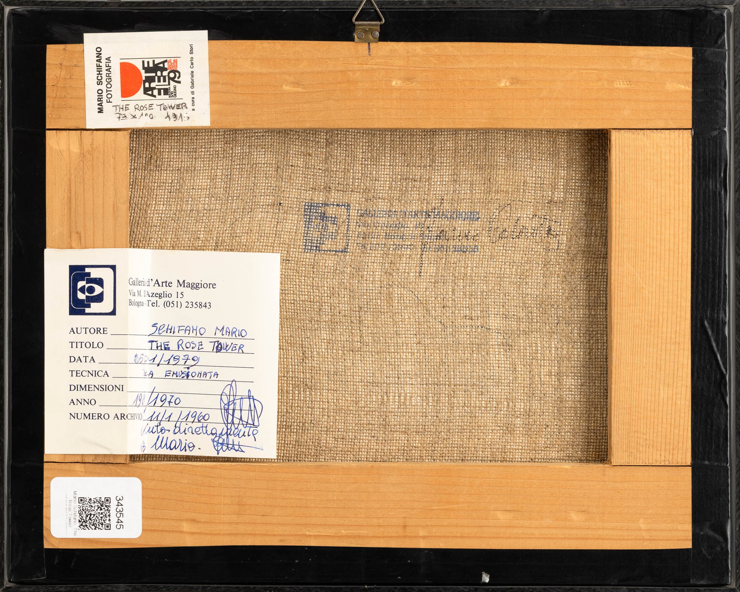 Label and stamp on the reverse from the Galleria d’arte Maggiore G.A.M., Bologna