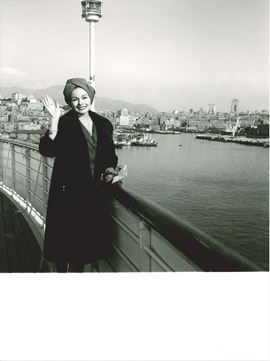 lotto di sette fotografie Jeanne Crain a Genova;