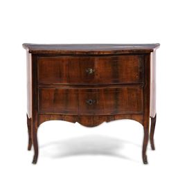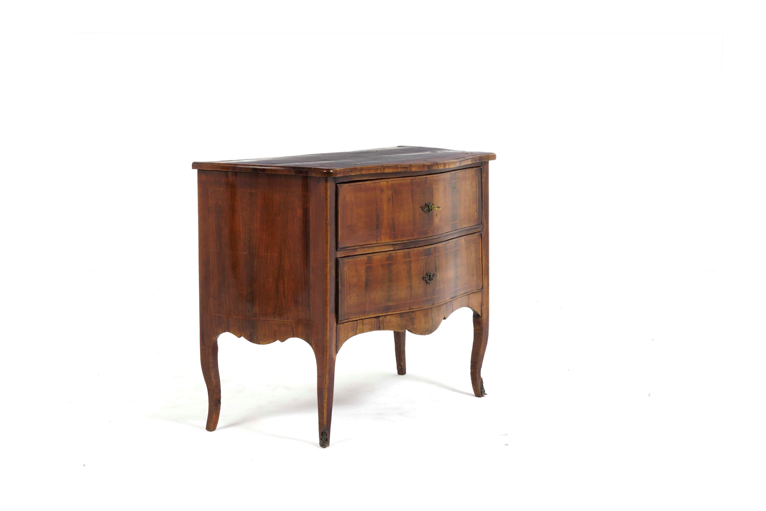 Fronte a due cassetti e fianchi mossi, gambe mosse, piano sagomato