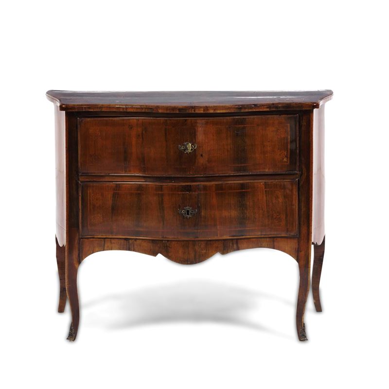 Cassettone lastronato in noce. Italia centrosettentrionale, XVIII secolo