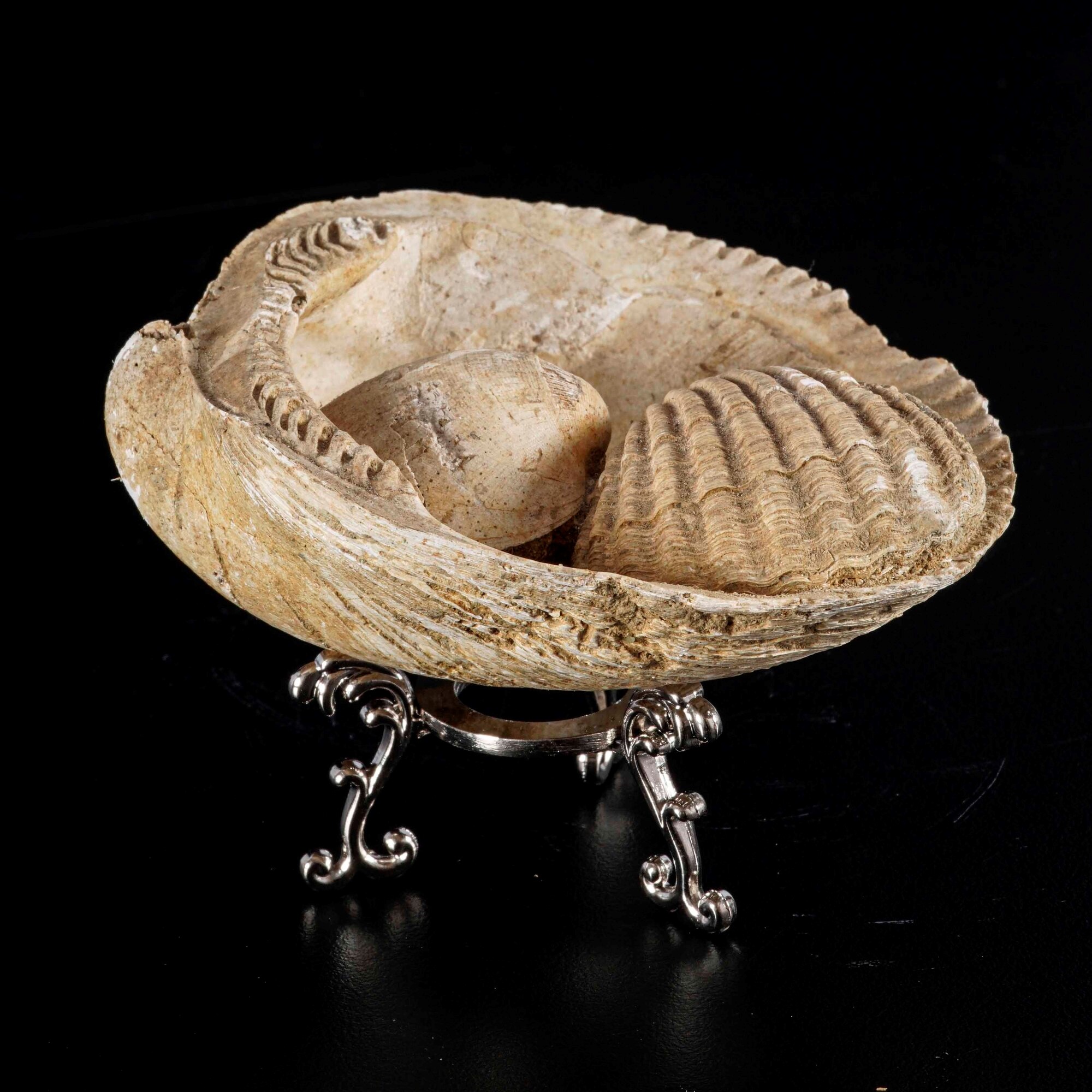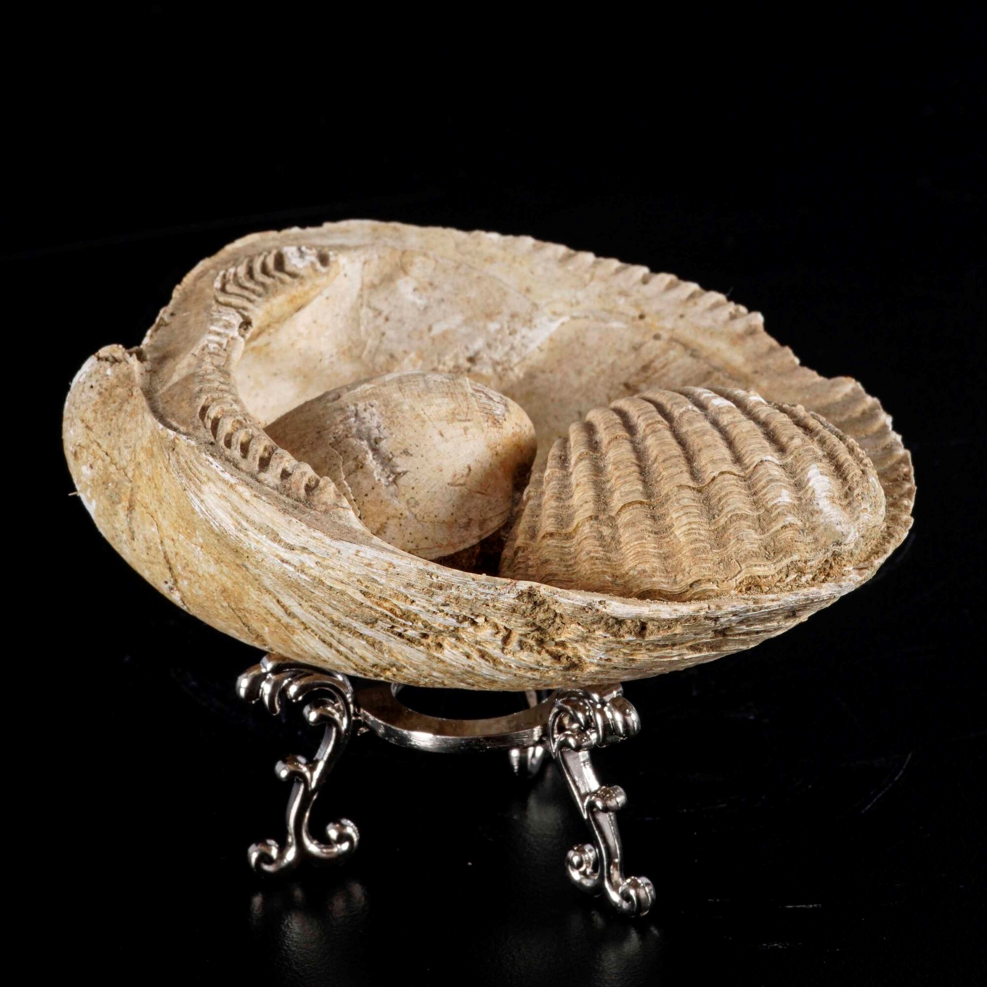 I fossili di Pecten sono particolarmente apprezzati sia per il loro valore estetico che scientifico, in quanto offrono importanti indizi sull'ecologia marina del passato e sulle dinamiche evolutive che hanno modellato la biodiversità moderna. Le caratteristiche ben conservate di questi fossili permettono una facile identificazione e studio comparativo, contribuendo alla ricostruzione delle condizioni paleoambientali del Pleistocene in Europa.