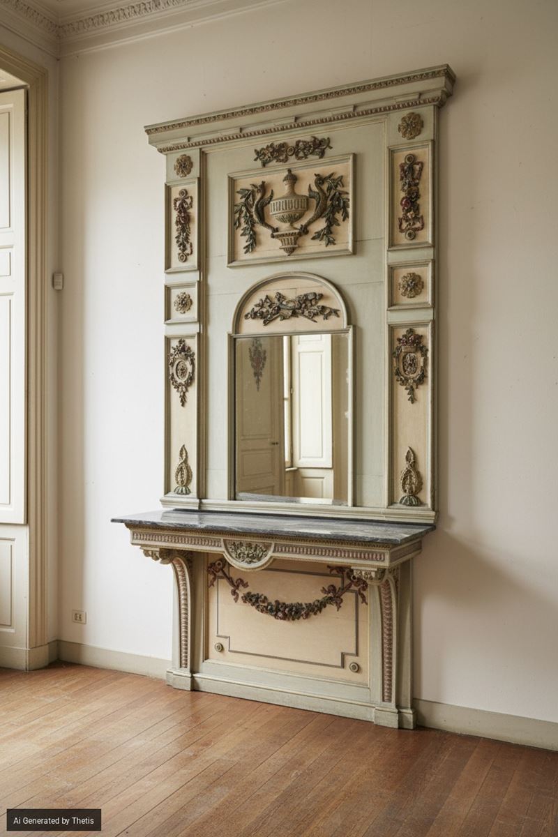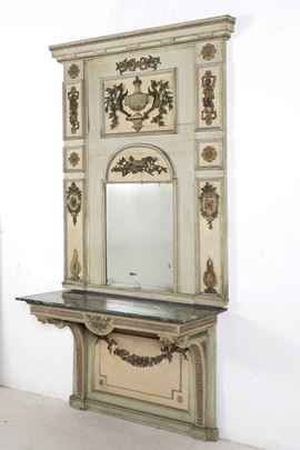 Consolle con specchiera in legno laccato. Fine XVIII secolo