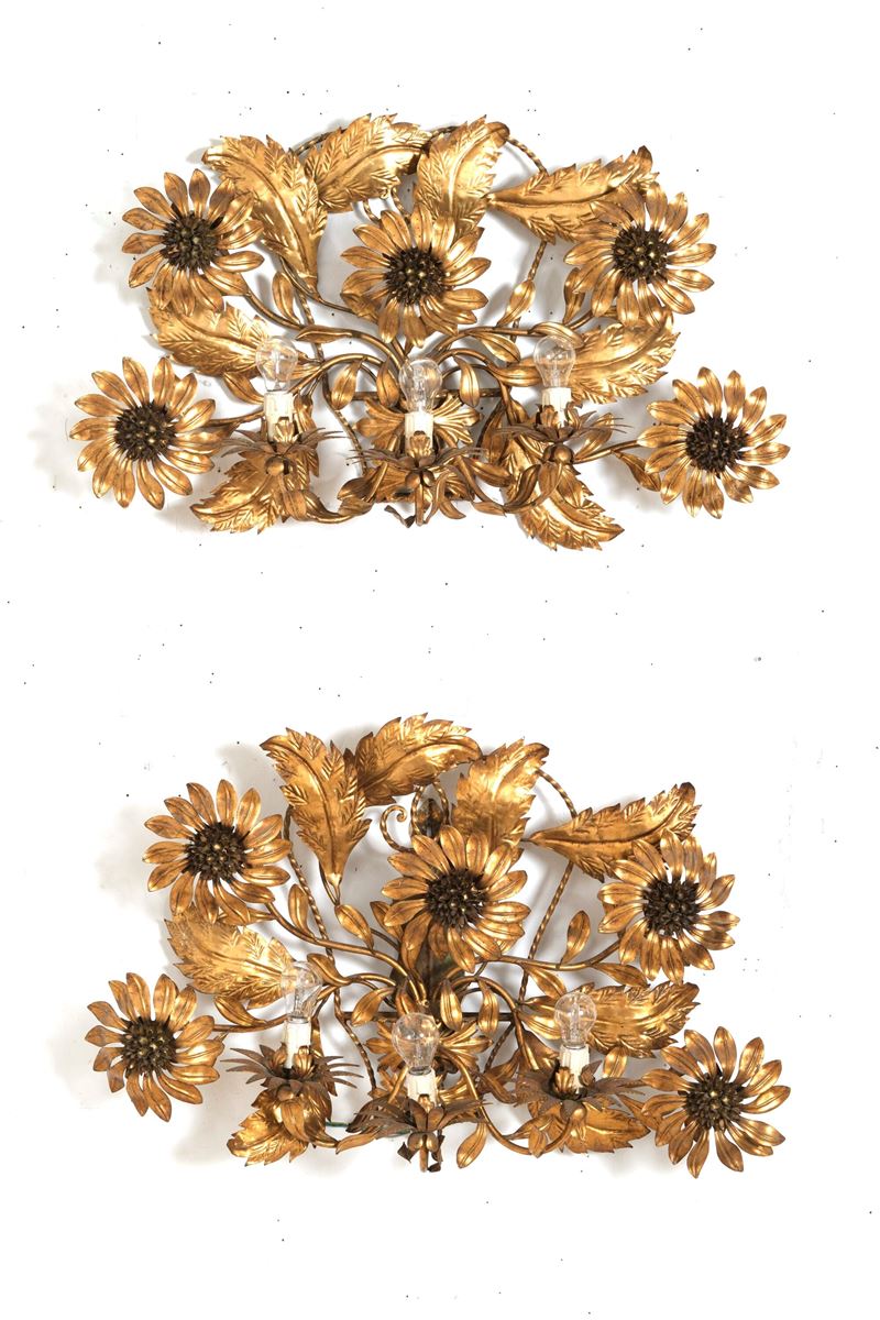 Coppia di appliques a girasole. Banci Firenze XX secolo